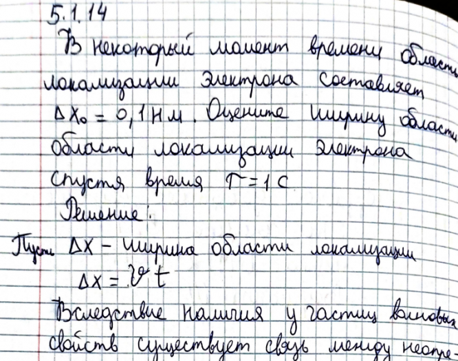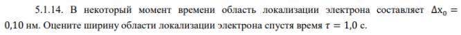 В некоторый момент времени область локализации электрона составляет Δx0 = 0,10 нм. Оцените ширину области локализации электрона спустя время 𝜏 = 1,0 с.