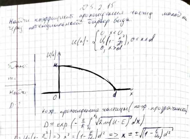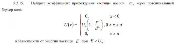 Найдите коэффициент прохождения частицы массой m0 через потенциальный барьер вида.