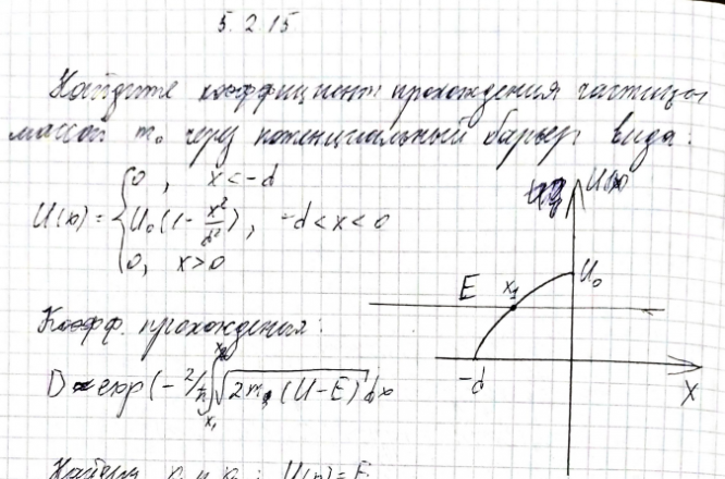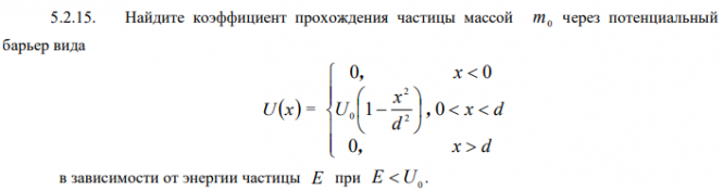 Найдите коэффициент прохождения частицы массой m0 через потенциальный барьер вида.