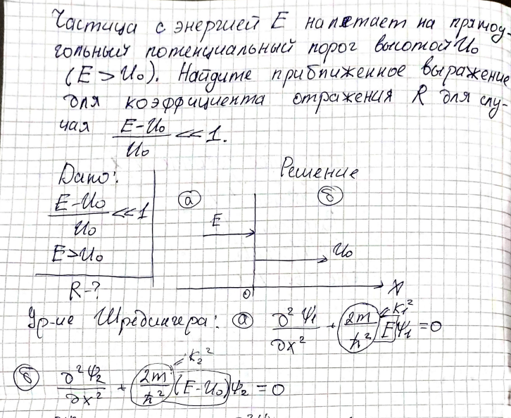Частица с энергией E налетает на прямоугольный потенциальный порог высотой U0.