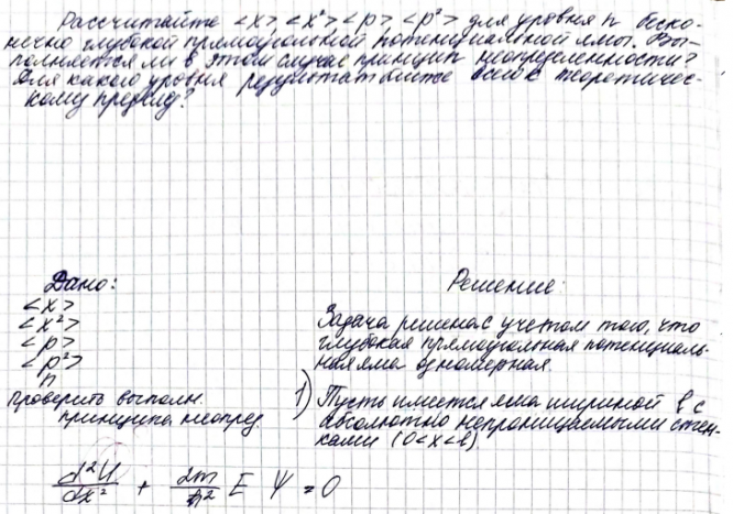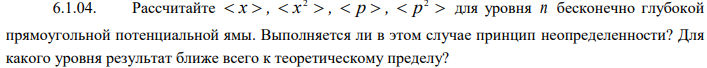Рассчитайте x , x , p , p для уровня n бесконечно глубокой прямоугольной потенциальной ямы. Выполняется ли в этом случае принцип неопределенности? Для какого уровня результат ближе всего к теоретическому пределу? .