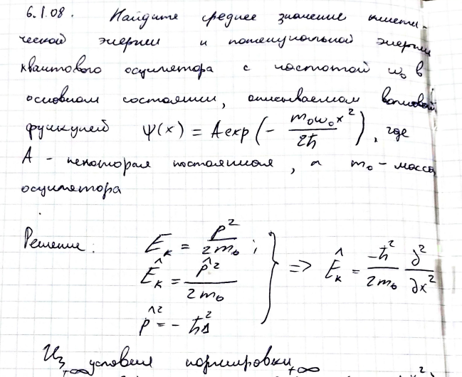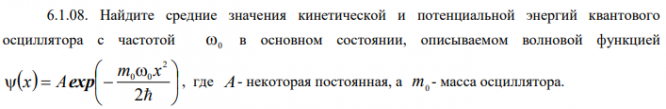 Найдите средние значения кинетической и потенциальной энергий квантового осциллятора с частотой 0 в основном состоянии, описываемом волновой функцией.