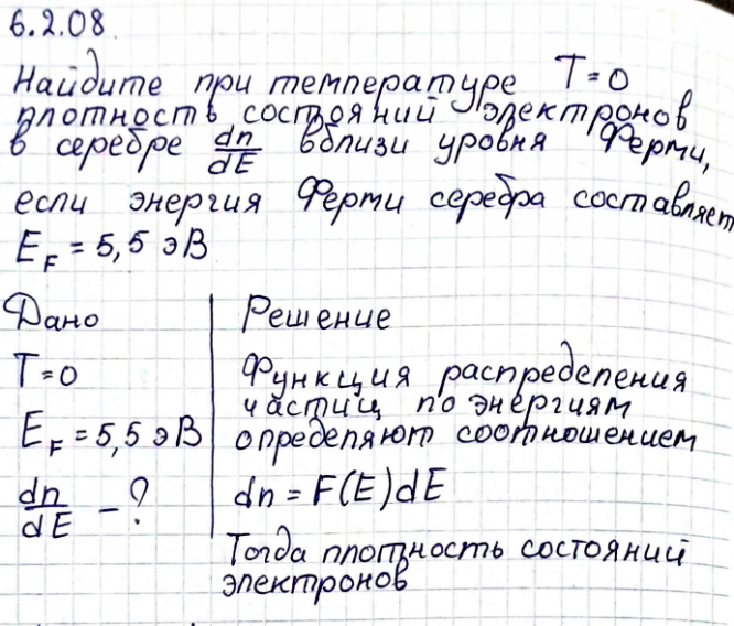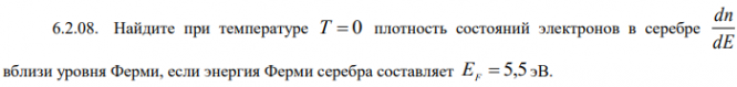 Найдите при температуре T  0 плотность состояний электронов в серебре dE dn вблизи уровня Ферми, если энергия Ферми серебра составляет .