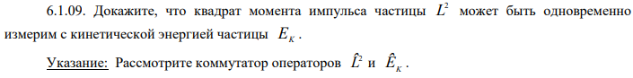 Докажите, что квадрат момента импульса частицы 2 L может быть одновременно измерим с кинетической энергией частицы EK ..