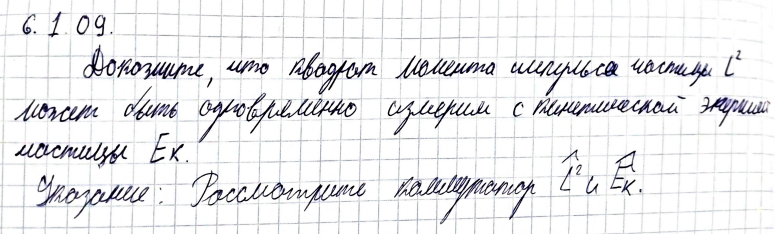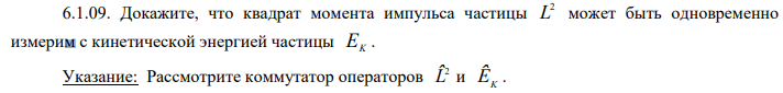 Докажите, что квадрат момента импульса частицы 2 L может быть одновременно измерим с кинетической энергией частицы EK.