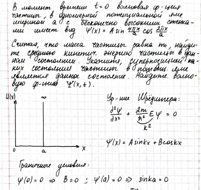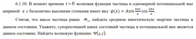 В момент времени t  0 волновая функция частицы в одномерной потенциальной яме шириной a с бесконечно высокими стенками имеет вид.