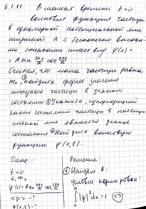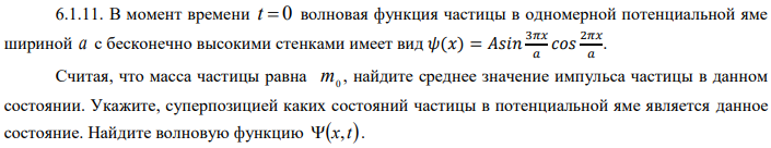 В момент времени t 0 волновая функция частицы в одномерной потенциальной яме шириной a с бесконечно высокими стенками имеет вид.