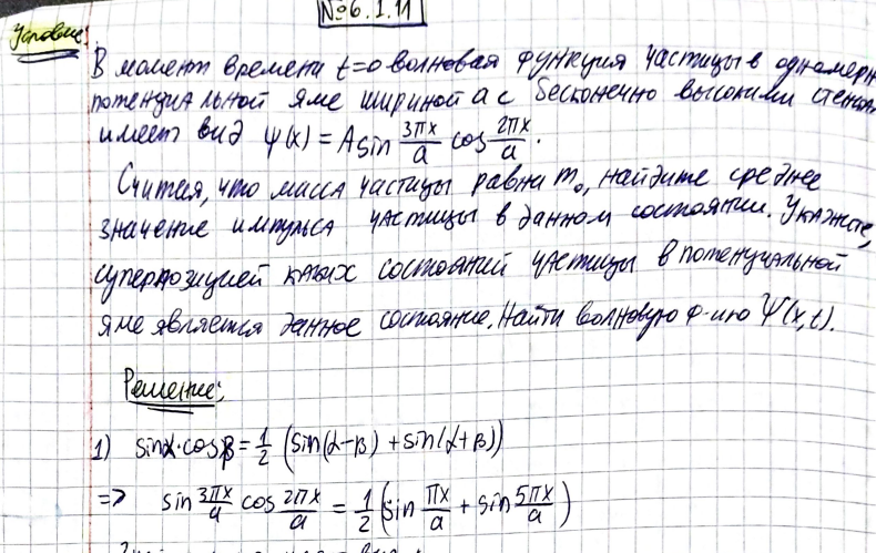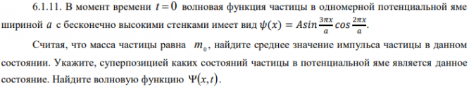 В момент времени t 0 волновая функция частицы в одномерной потенциальной яме шириной a с бесконечно высокими стенками имеет вид .