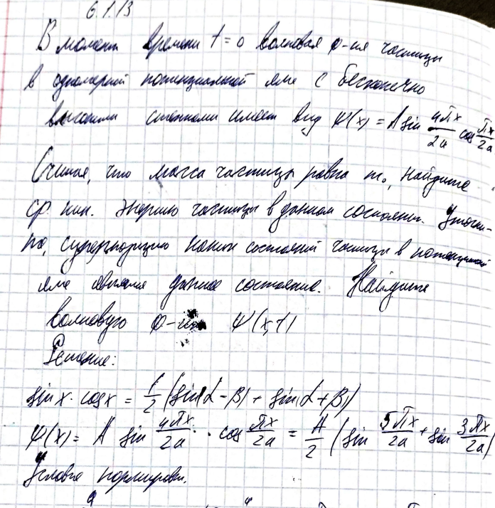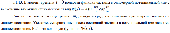 В момент времени t 0 волновая функция частицы в одномерной потенциальной яме с бесконечно высокими стенками имеет вид.