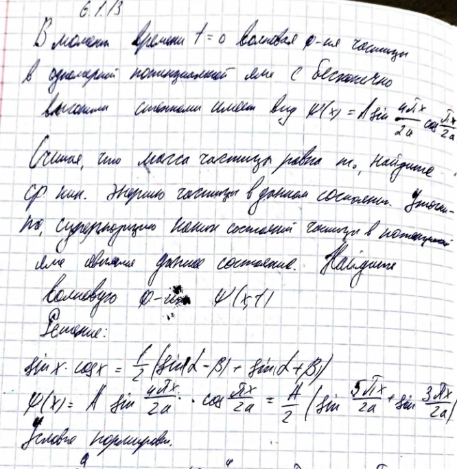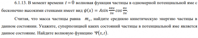 В момент времени t  0 волновая функция частицы в одномерной потенциальной яме с бесконечно высокими стенками имеет вид.