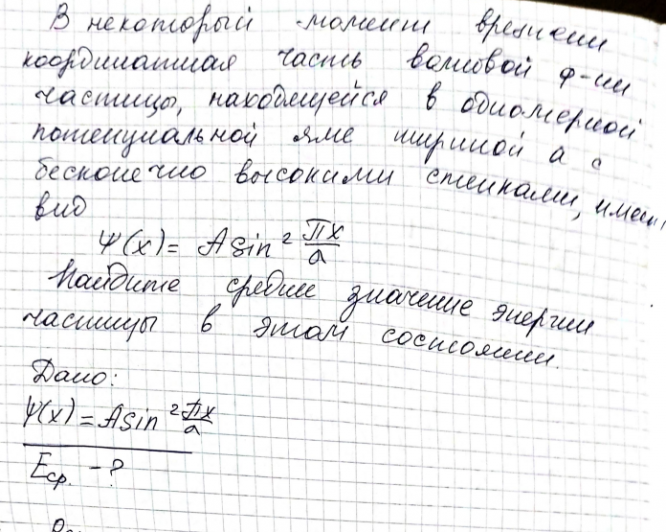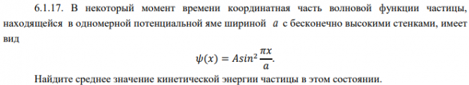 В некоторый момент времени координатная часть волновой функции частицы, находящейся в одномерной потенциальной яме шириной a с бесконечно высокими стенками, имеет вид.
