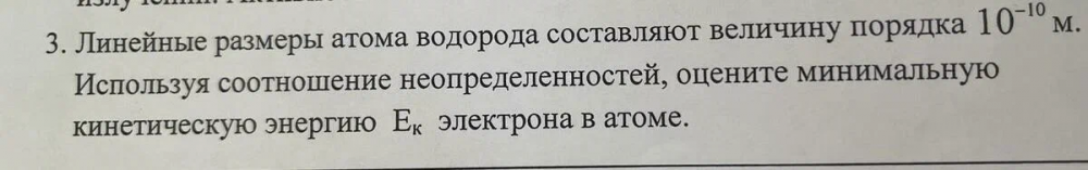 Задача 3: Оцените минимальную кинетическую энергию электрона в атоме