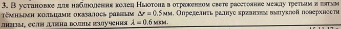Задача: Определить радиус кривизны выпуклой поверхности линзы
