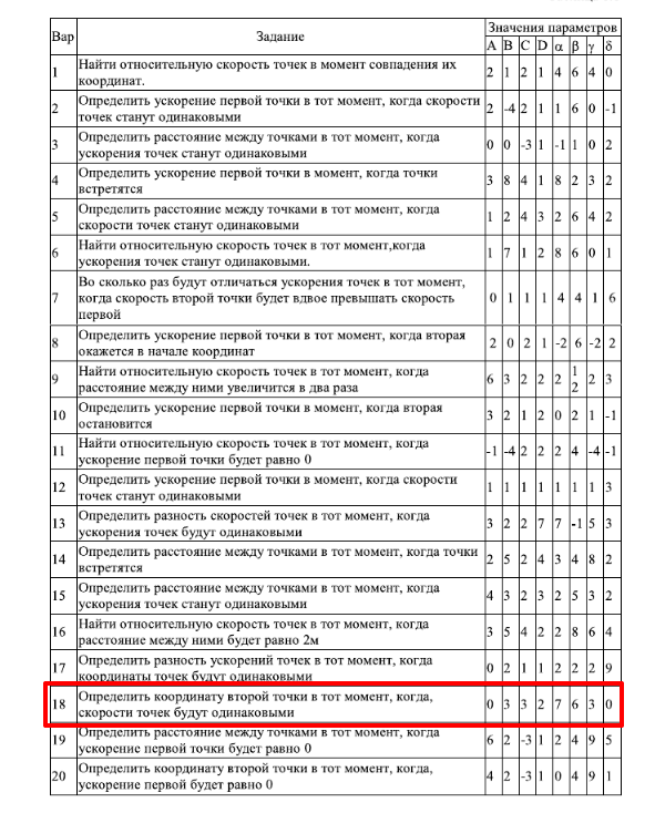 Задача 1.1: Кинематика поступательного движения вариант 18