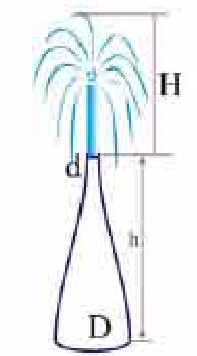 Главная » Учебные материалы » Физика » Решения задач » Несколько классов/семестров » Сопло фонтана, производящего вертикальную струю высотой H = 5 м, имеет форму усечённого конуса, сужающегося кверху. Диаметр верхнего сечения d = 3 см, нижнего сечения - D = 9 см. Высота сопла фонтана составляет h = 1 м. Определите расход фонтаном вод