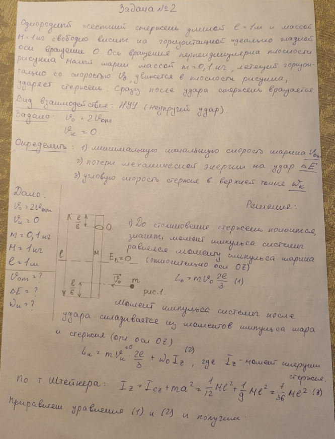 Дз-1, задача №2 - "Динамика вращательного движения", зачтена на максимальный балл