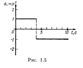 Зависимость ускорения от времени при некотором движении тела представлена на рис. 1.5. Определить среднюю путевую скорость за время t=8 с. Начальная скорость v0=0.