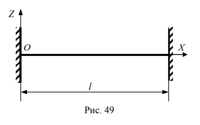 Для струны длиной l , натянутой с силой F и закреплённой, как указано на рис.49, необходимо: