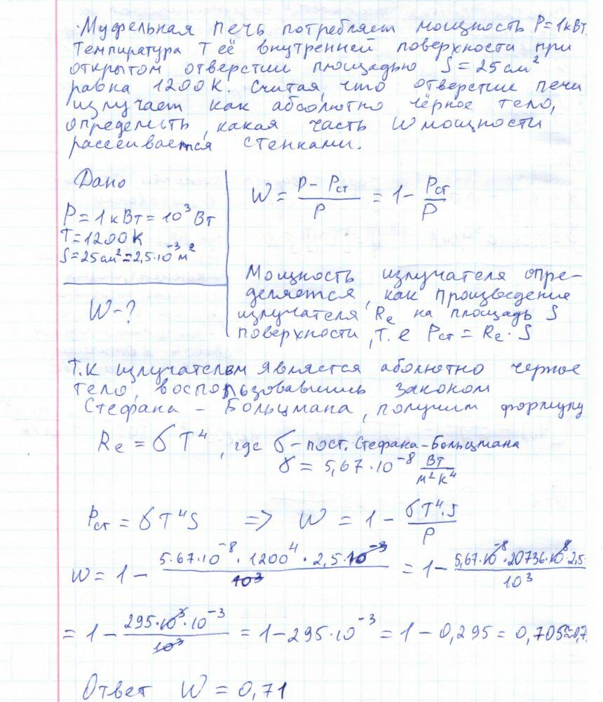 Для студентов СКФУ в г. Пятигорск по предмету ФизикаМуфельная печь потребляет мощность Р=1кВт. Температура Т её внутренней поверхности при открытом отверстии площадью S=25 см2 равна 1200 К. Считая, что Муфельная печь потребляет мощность Р=1кВт. Температура Т её внутренней поверхности при открытом отверстии площадью S=25 см2 равна 1200 К. Считая, что