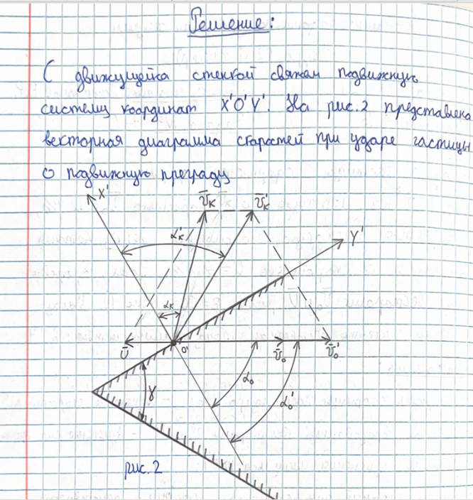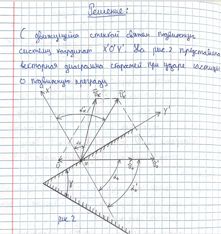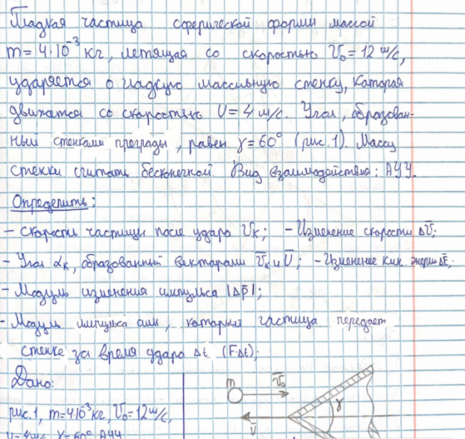 Гладкая частица сферической формы массой m, которую можно рассматривать как материальную точку, ударяется со скоростью о гладкую массивную преграду, которая движется со скоростью . Угол, образованный векторами и , равен . Массу преграды считать бесконечной. На рис. 5, 6 преграда имеет форму плоской стенки, на рис.7 – форму острого конуса с углом раствора γ, а на рис. 8 – форму конуса сферической головной частью радиусом R. Удар частицы о сферическую поверхность происходит в точке А, расположенной под углом γ относительно оси преграды. При этом АО = R.