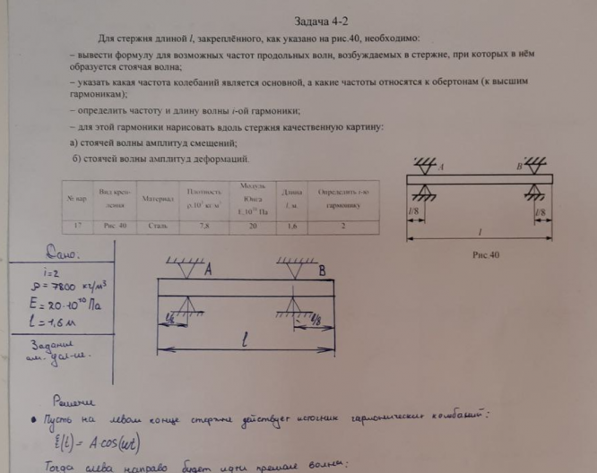 - Вывести формулу для возможных частот продольных волн, возбуждаемых в стержне, при которых в нём образуется стоячая волна;