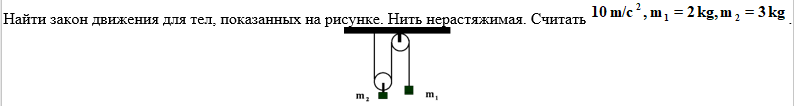 Найти закон движения для тел, показанных на рисунке. Нить нерастяжимая. Считать
