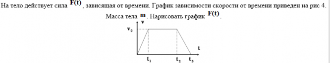На тело действует сила , зависящая от времени. График зависимости скорости от времени приведен на рис 4. Масса тела . Нарисовать график .