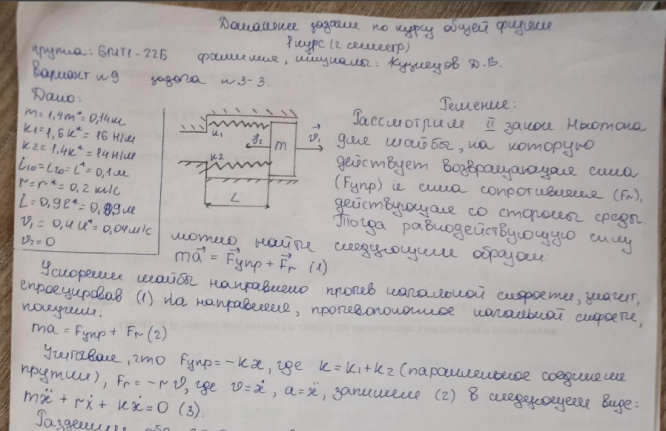 Дз-2, задача №3-3 - "Колебания", зачтена на максимальный балл
