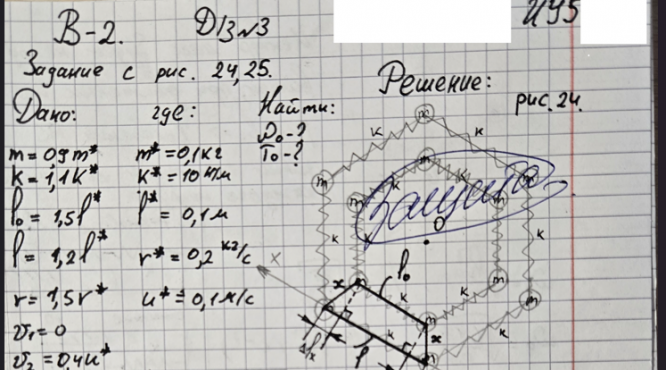 Для механических систем (МС), расположенных на горизонтальной плоскости и пред- ставленных на рис. 22 – 25, определить круговую частоту и период собственных незатухающих колебаний. Значения масс шариков, жёсткость соединяющих их пружин, а также другие исх.