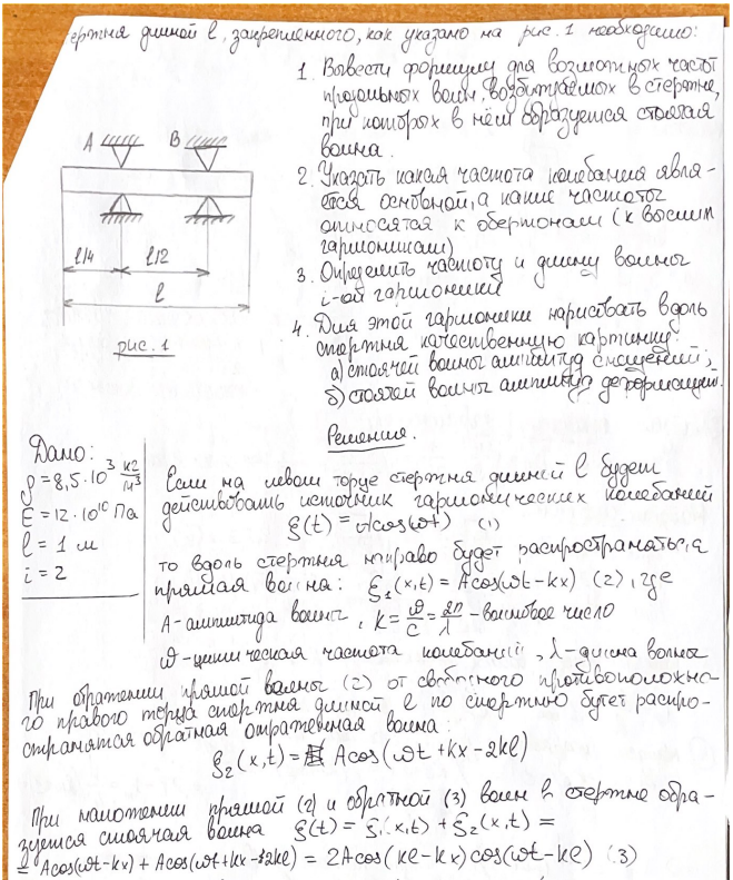 - Вывести формулу для возможных частот продольных волн, возбуждаемых в стержне, при которых в нём образуется стоячая волна;