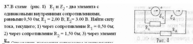 Задача: В схеме (рис. 8) Е и Е — два элемента с одинаковыми внутренними сопротивлениями