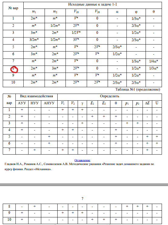 Вариант 8 - ДЗ №1 - Динамика материальной точки