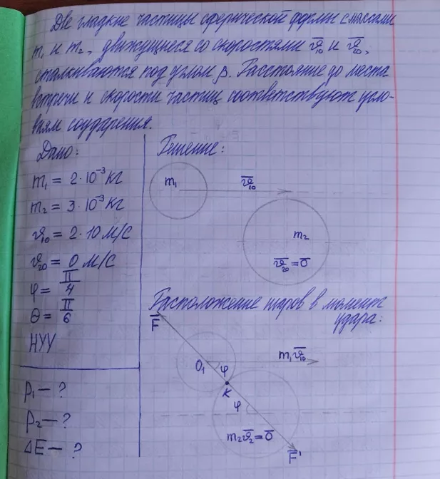 E1, E2 - кинетические энергии соответственно 1-ой и 2-ой частицы после удара.