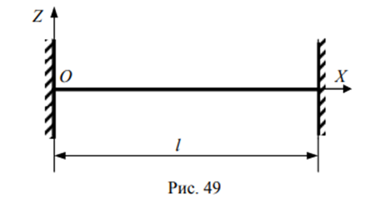 Задача 4-3 для вариантов с 23 по 28Для струны длиной l , натянутой с силой F и закреплённой, как указано на рис.49, необходимо: