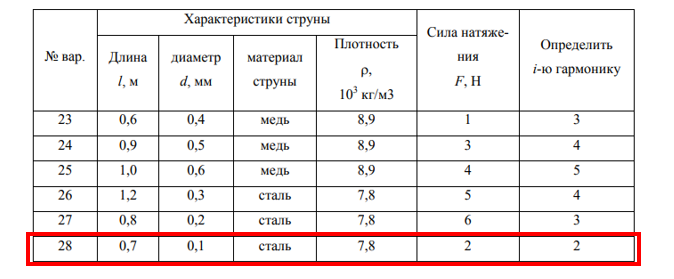 Задача 4-3 для вариантов с 23 по 28Для струны длиной l , натянутой с силой F и закреплённой, как указано на рис.49, необходимо: