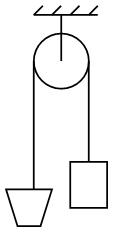 Ведерко с песком и груз в начальный момент времени имеют одинаковую массу m0 = 0,5 кг и связаны нитью, перекинутой через невесомый блок. При t = 0 из ведерка через отверстие в дне начал высыпаться песок в количестве μ = 50,0 г/с. Пренебрегая трением в блоке, найти, какое расстояние пройдет груз за первые 5 секунд движения (считать, что за это время песок высыпался не полностью). ![]()