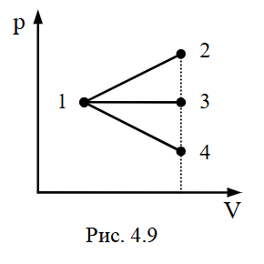 На диаграмме pV изображены процессы 1-2, 1-3, 1-4 (рис 4.9). В каком процессе изменение энтропии газа минимально, а в каком — максимально?