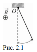 Проводящий стержень массой 100 г и длиной 1 м подвешен за верхний конец так, что он может свободно вращаться вокруг неподвижной оси 001​​​​ (рис. 2.1). Стержень помещен в однородное магнитное поле с индукцией 0,25 Тл, и по нему проходит ток 4 А. Найти угол, на который отклонился стержень от вертикали.