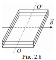 В однородном магнитном поле помещена рамка, состоящая из 50 витков провода. Площадью каждого витка 4 см2. Рамка может вращаться вокруг неподвижной оси 00' перпендикулярной к силовым линиям поля (рис. 2.8). Упругие силы спиральной пружины действуют на