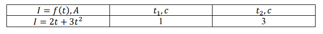 Сила тока I в проводнике изменяется со временем по закону I = f (t). Какое количество электричества проходит через поперечное сечение проводника за время от t1 до t2? При какой силе постоянного тока I через поперечное сечение проводника за то же время проходит такое же количество электричества? Построить график зависимости q = f (t).