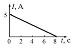 Какова величина заряда, прошедшего через поперечное сечение проводника за время от t1 = 0 до t2 = 8 с, если сила тока изменяется со временем так, как показано на рисунке?