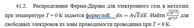 Распределение Ферми-Дирака для электронного газа в металлах при температуре Т = 0 К задается формулой: . Найти для свободных электронов из зоны проводимости проводника при Т = 0 К.