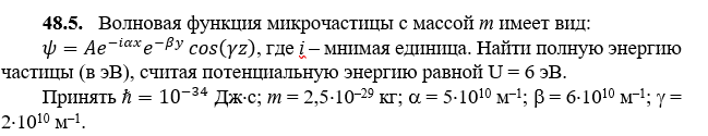 , где i – мнимая единица. Найти полную энергию частицы (в эВ), считая потенциальную энергию равной U = 6 эВ.