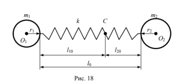 - жёсткость левой и правой частей пружины, длины которых равны l10 и l20;