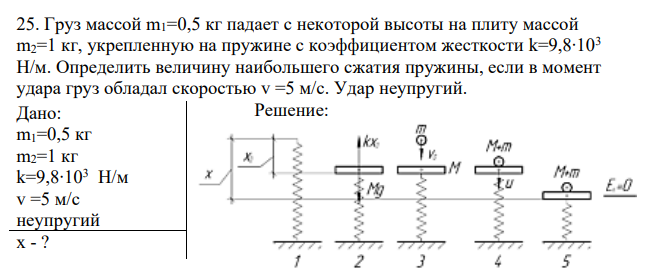Главная » Учебные материалы » Физика » Решения задач » Несколько классов/семестров » Груз массой m1=0,5 кг падает с некоторой высоты на плиту массой