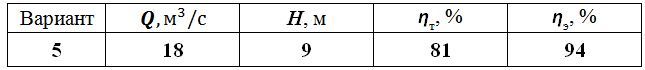 Определить мощность малой ГЭС, если расход воды Q, напор Н. Коэффициент потерь напора в открытом гидроканале К = 0,85, КПД гидротурбины ηт, КПД гидрогенератора ηэ. Как изменится мощность, если затвором уменьшить расход воды до 70% от номинального? Будет она больше или меньше, чем 70% от номинальной мощности?