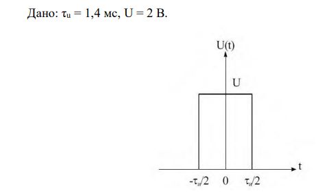 а) Определить спектральную плотность униполярного прямоугольного импульса. б) Построить АЧХ и ФЧХ спектральной плотности при заданных длительности и амплитуде импульса. в) Построить АЧХ и ФЧХ для импульсов вдвое меньшей длительности. Дано: τu = 1,4 мс, U = 2 В.