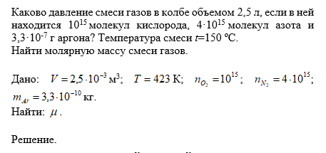Применение уравнения Менделеева-Клапейрона для смеси газов.