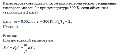 Какая работа совершается газом при изотермическом расширении кислорода массой 2 г при температуре 300 К, если объем газа увеличился в 2 раза?