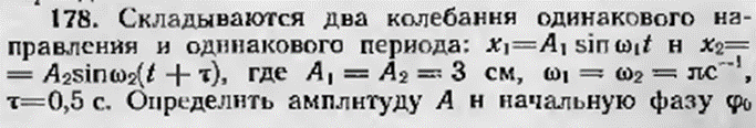 178.Складываются два колебания одинакового направления и одинакового периода: